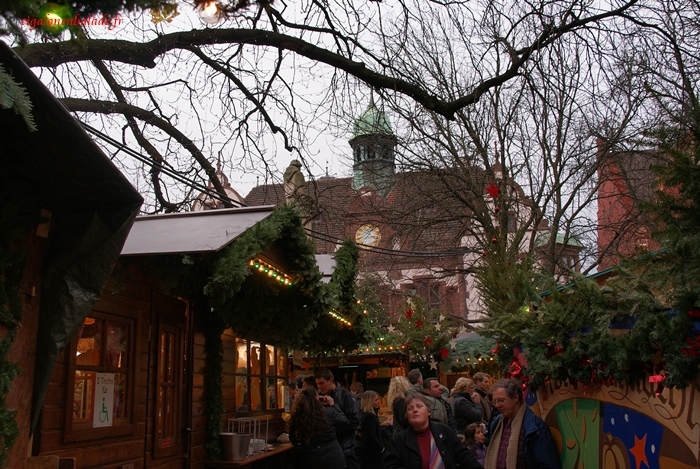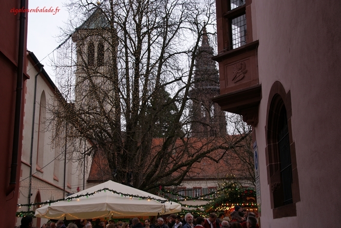 La cathédrale se voit de loin. Sa flèche qui s’élance dans le ciel de 116 mètres domine le marché de Noël.