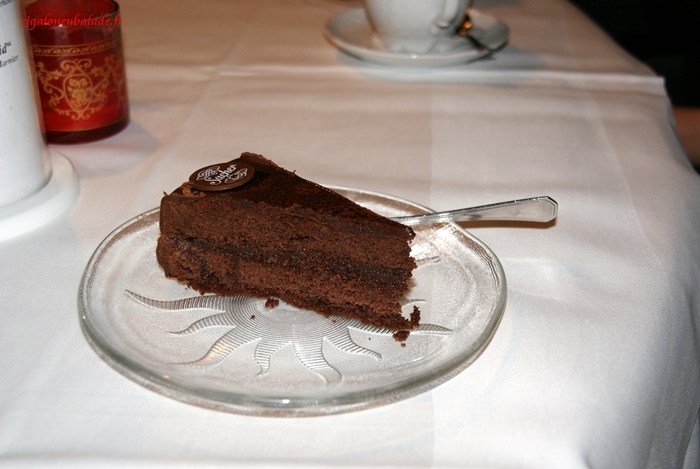 Nous terminons la journée dans un restaurant où nous dégustons un fameux sacher … même si la spécialité de la région est le Schwartzwälder.