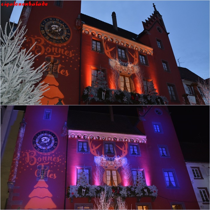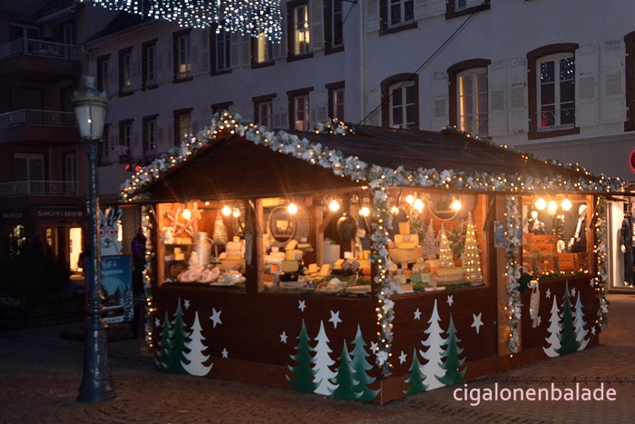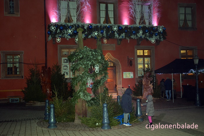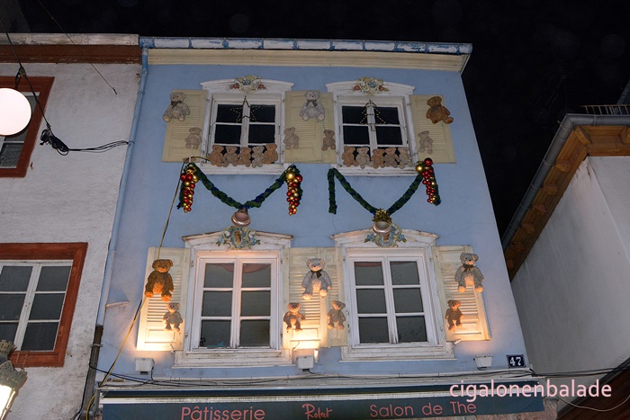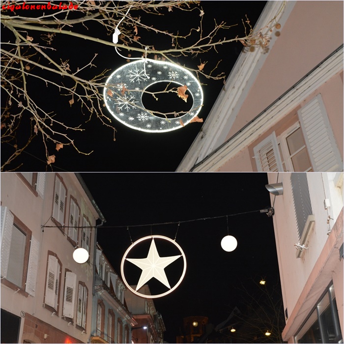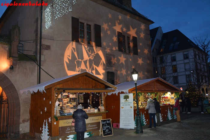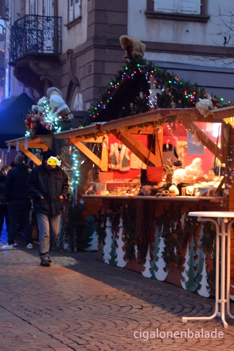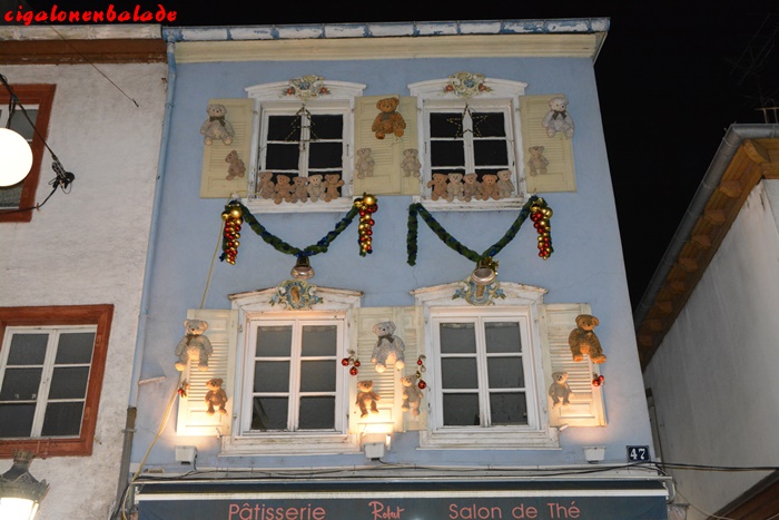 Beaucoup de maisons sont décorées et ceci même hors du centre historique où se tient le marché ou les marchés car comme à Colmar, la cinquantaine de chalets est regroupée en quatre lieux différents.