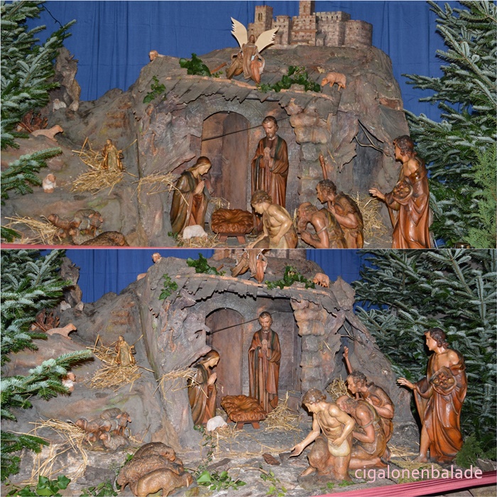 En 2023, le masque est tombé, l’ancienne chapelle St-Martin n’est plus accessible suite à un incendie en juin 2022. L’exposition traditionnelle de crèches a donc pris place dans la rue, derrière des vitrines et les photos sont donc plus difficiles à faire.