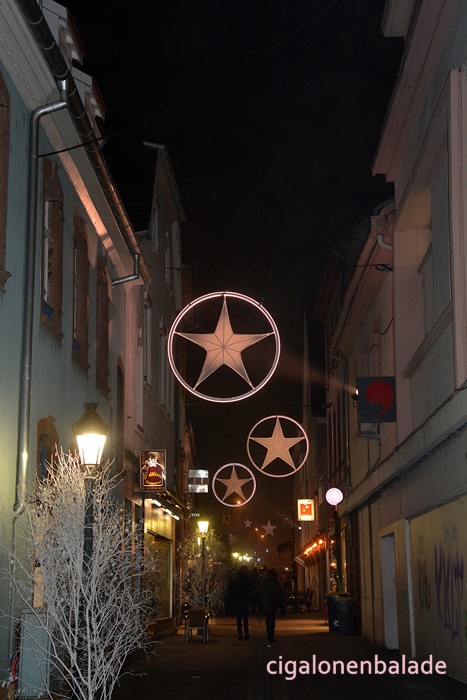 C’est toujours par un chemin lumineux que nous accédons au centre ville festif.