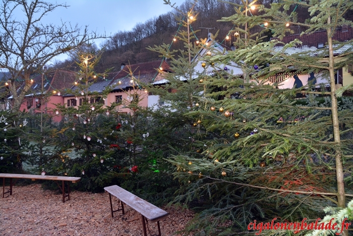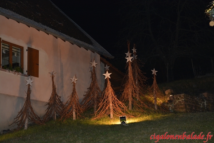 Entrons tout d’abord dans la forêt des sapins qui ouvre le circuit. La décoration des arbres est simple mais authentique. Et en plus je trouve des idées bonnes à prendre pour une prochaine année.