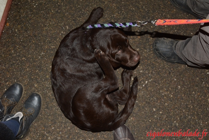 Après un chocolat chaud, histoire de se réchauffer un peu, il est temps de quitter Albé. Noa, fatiguée par cette première grande balade se couche en attendant le bus du retour.