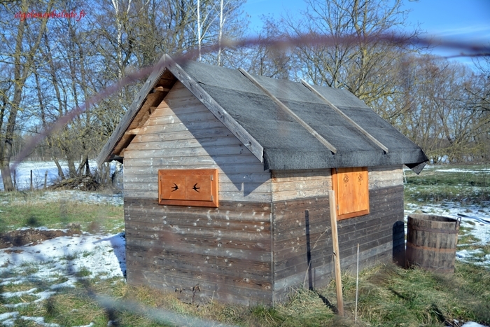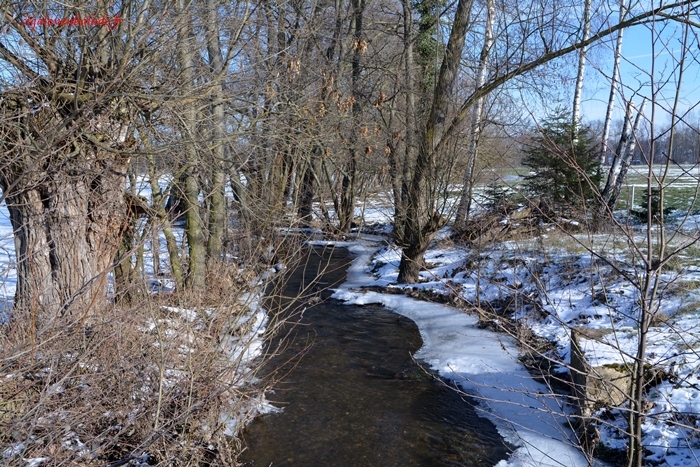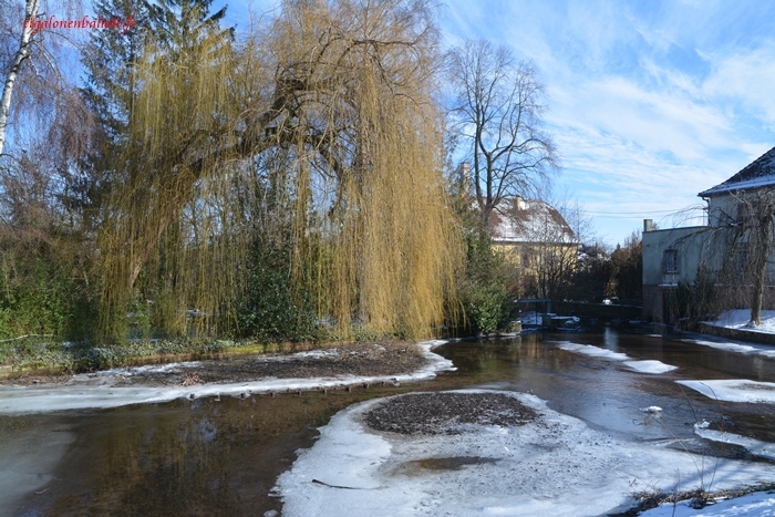 Nous arrivons déjà au lieu-dit « Baignade des chevaux » ( Rossschwamm ). En été, le dimanche matin, les paysans y venaient baigner et brosser les chevaux. Actuellement, c’est un joli miroir d’eau qui est encore plus agréable à voir quand il est gelé ! Facilement accessible aux chiens, il n’est pas question de s’y baigner en ce mois de février.