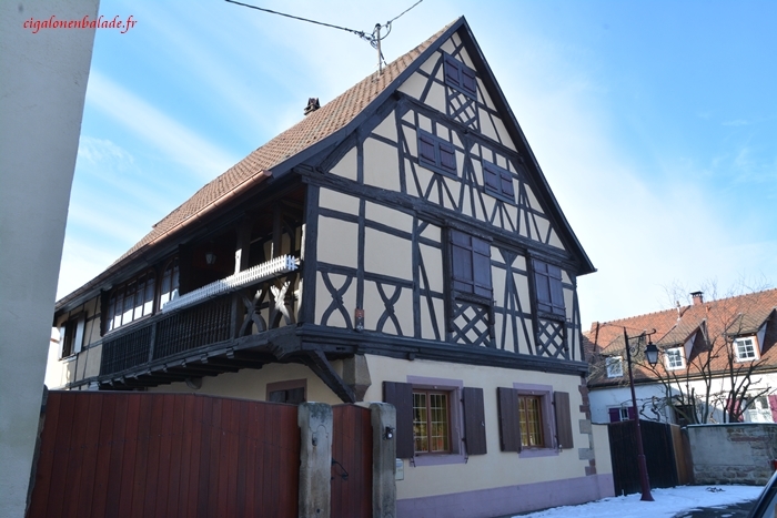 A l’arrière de la place Saint-Cyriaque, une maison alsacienne typique du XVIIème siècle a bénéficié d’un ravalement qui semble récent. (2021)