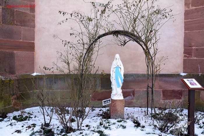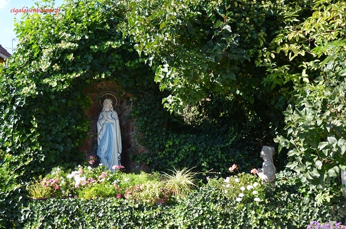 En face de l’église, une grotte de Lourdes érigée en 1958 à l’initiative d’Eugène Schmitt, curé de la paroisse. C’est le lieu de bénédiction des rameaux et le départ des processions lors des professions de foi et des premiers pardons.