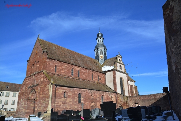En 940, le comte Eberhard fonde un couvent de moines bénédictins. À sa mort, son fils, Hugues III, comte d’Eguisheim fait construire l’abbaye. Le pape alsacien Léon IX consacre l’autel en 1054 et offre à l’abbaye une relique de St-Cyriaque.