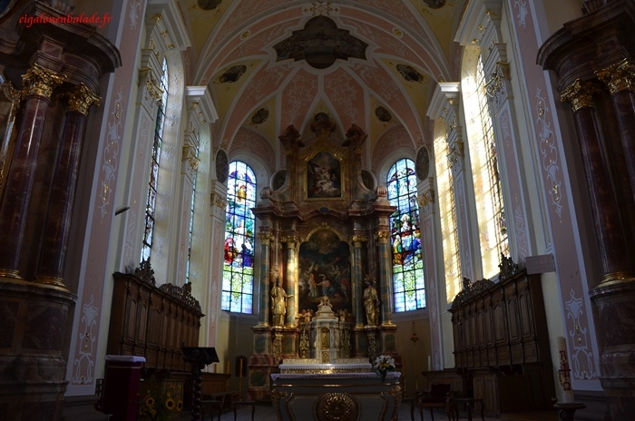 L’intérieur mêle très harmonieusement styles roman et baroque.