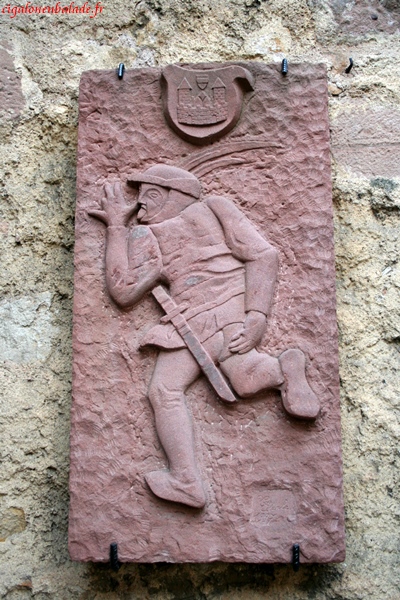 Une fresque dans l’un des murs nous rappelle que Bergheim a eu un temps le statut équivalant à celui d’une ville libre. Parmi les privilèges offerts par ce statut particulier, il y avait celui du droit d’asile. Monsieur « Lagmi » , figure symbolique, représente un homme du Moyen-Age qui montre ses fesses et fait un pied de nez à ses poursuivants