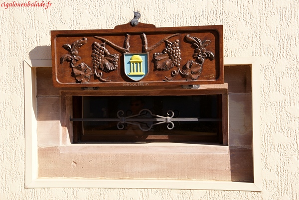 Dangolsheim est un village viticole, son blason l’atteste : un temple d'or bâti en rotonde, couvert en dôme entouré de grappes, feuilles et ceps de vigne.