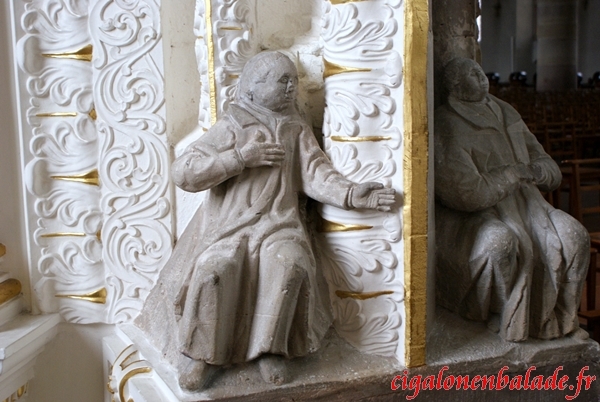 Aux angles des chapelles côté nef, de petits personnages sculptés veillent. La plupart ont le regard dirigé vers le ciel.