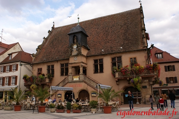 En suivant la rue, on arrive sur la place de l’hôtel de ville. Notre regard est immé-diatement attiré par un bâtiment de style Renaissance, la Metzig, ancien siège de la corporation des bouchers construit vers 1525. Le rez-de-chaussée à arcades servait d’abattoir et de lieu de vente, tandis qu’un très bel escalier mène à l’étage qui abritait les locaux de la corporation.
