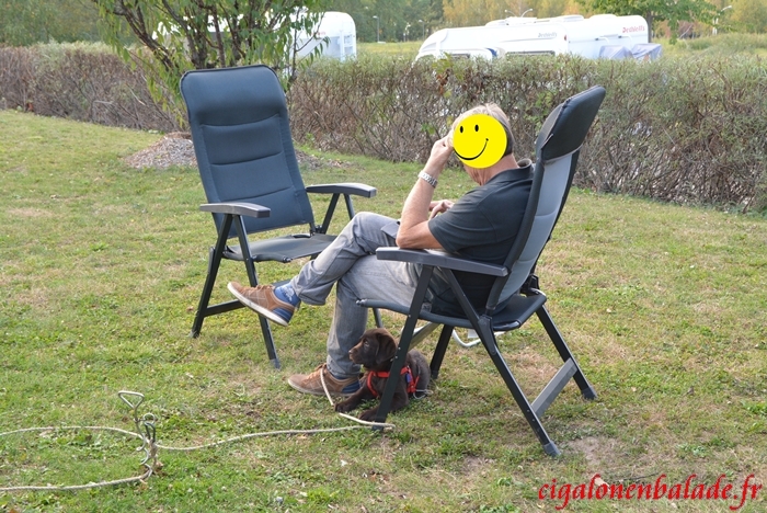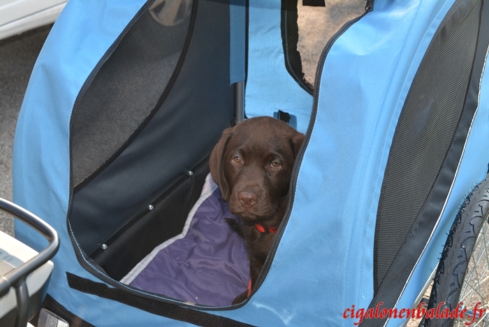 Pendant que je tricote, Gabriel va découvrir l’île à vélo avec Noa. La miss, bien que sage, n’apprécie pas vraiment sa petite remorque et c’est avec beaucoup de plaisir qu’elle revient au point de départ et qu’elle finit la journée à renifler le nouveau lieu de bivouac. Tant d’odeurs, c’est un vrai régal pour cette truffe toute neuve !