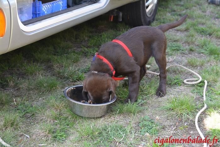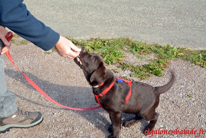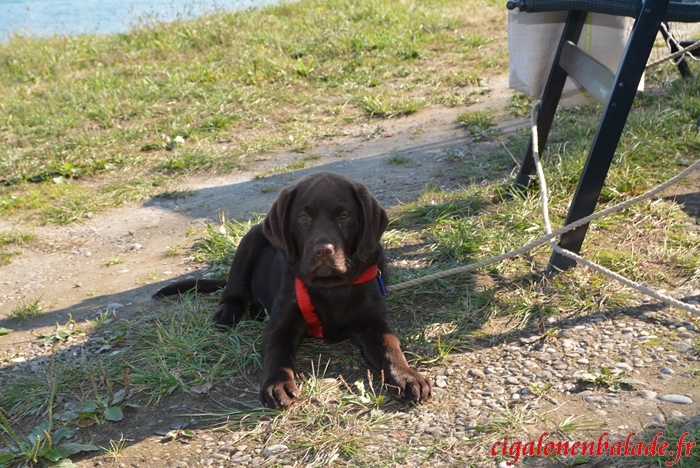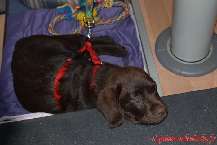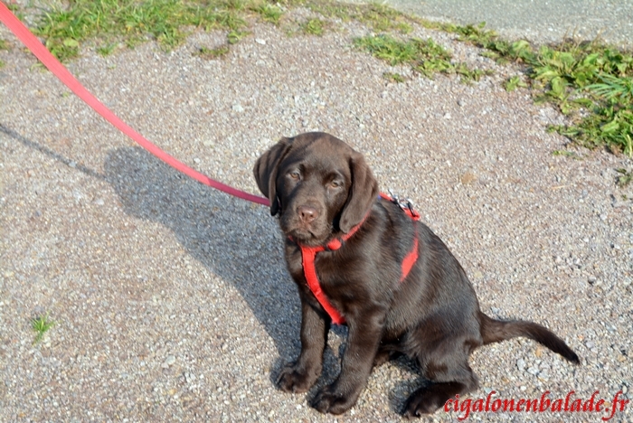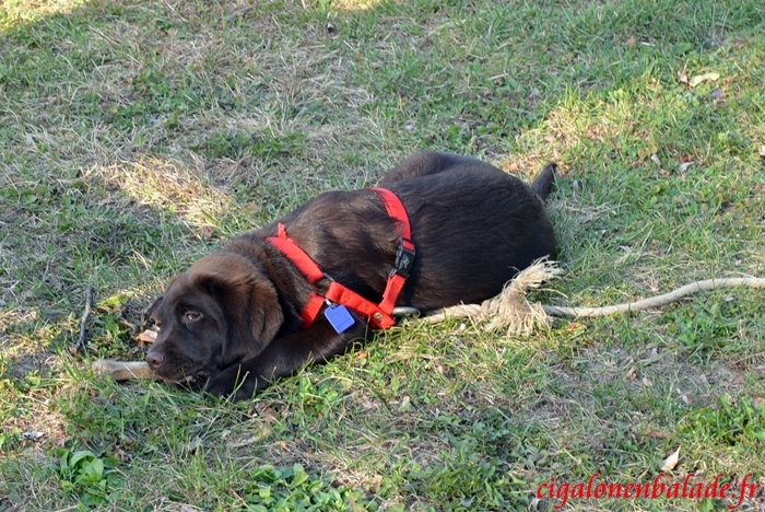 Hors de question de parcourir de longues distances. A 2 mois et demi, il faut veiller à l’ossature des grands chiens et éviter qu’ils ne se fatiguent de trop.