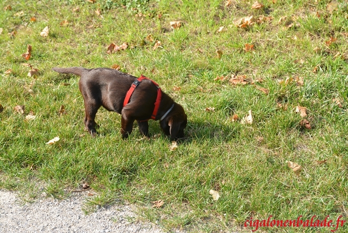 Noa découvre rapidement les alentours et se donne à cœur joie à renifler des nouvelles odeurs.
