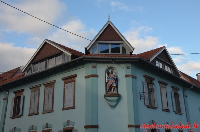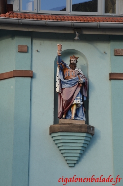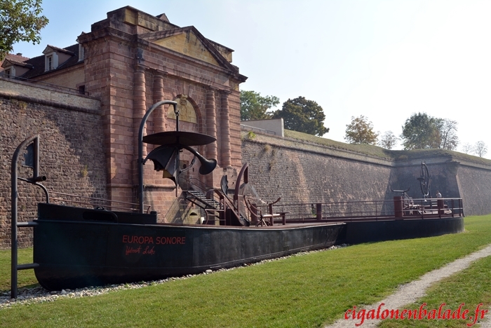Nous regagnons le camping-car à travers les rues à angles droit. Le damier mis en place par Vauban permet de se repérer facilement. Au passage, Gabrinus, le légendaire patron de la bière, nous salue. Il serait le fils d’un certain Henri III et il s’est enrichi grâce à une amélioration qu’il a apporté à la fabrication de la bière en y ajoutant du houblon. Il orne l’ancienne brasserie annexe construite en 1899 par le célèbre brasseur allemand Riegel, de Kayserstuhl. La bière était vendue aux militaires de la forteresse. La brasserie a fonctionné jusqu’en 1945 puis a été remplacée par une fabrique de limonade qui a fermé ses portes en 1980. C’est l’actuel propriétaire du bâtiment qui a rénové la statue et les murs en 2004.