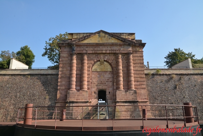 Les remparts sont franchissables par quatre portes qui portent le nom des 4 villes qui entourent Neuf-Brisach : les portes de Bâle, de Strasbourg, de Belfort et la porte de Colmar orientée vers l’ouest par laquelle nous pénétrons dans le premier fossé.