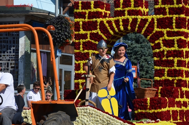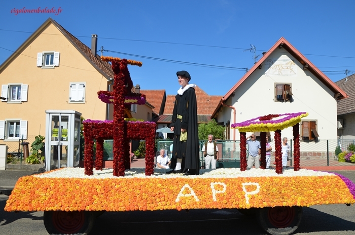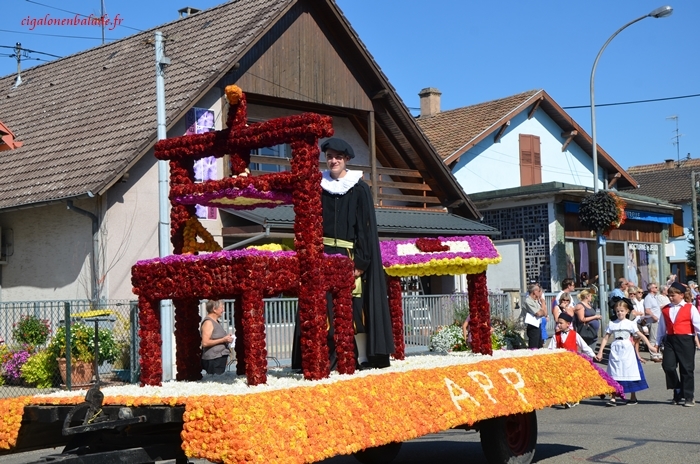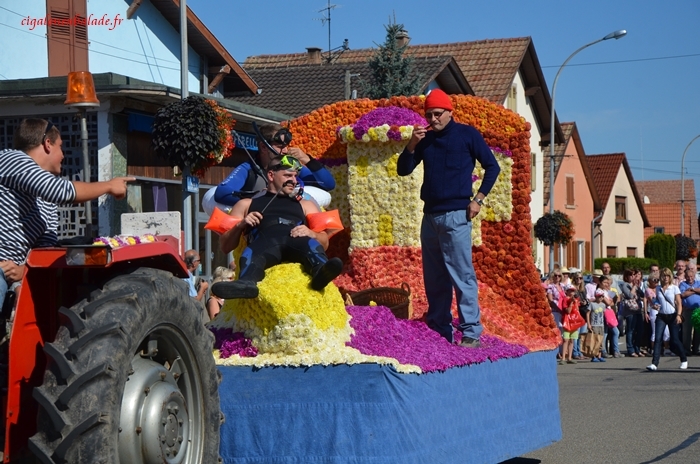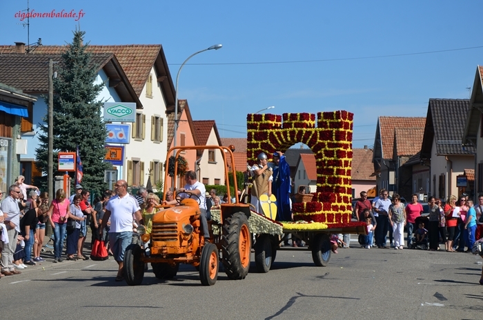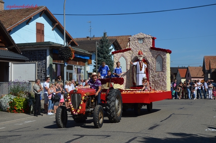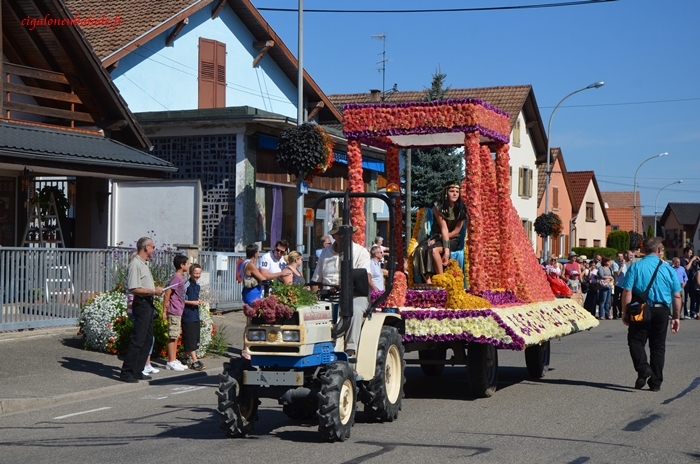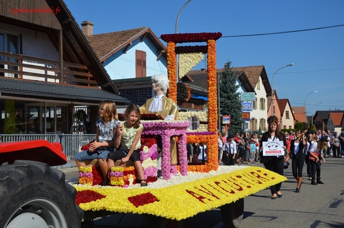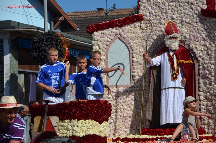 L’après-midi laisse place au cortège fleuri. Cette année, les chars ornés de dahlias se sont déclinés sur le thème des personnages historiques. Cortège modeste certes, animé par les associations locales qui ont passé beaucoup de temps à l’élaboration de leur char, mais la kilbe fait partie de l’âme du village !