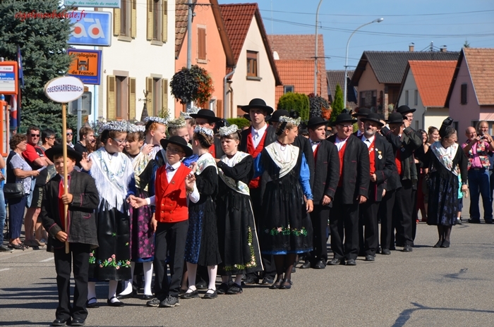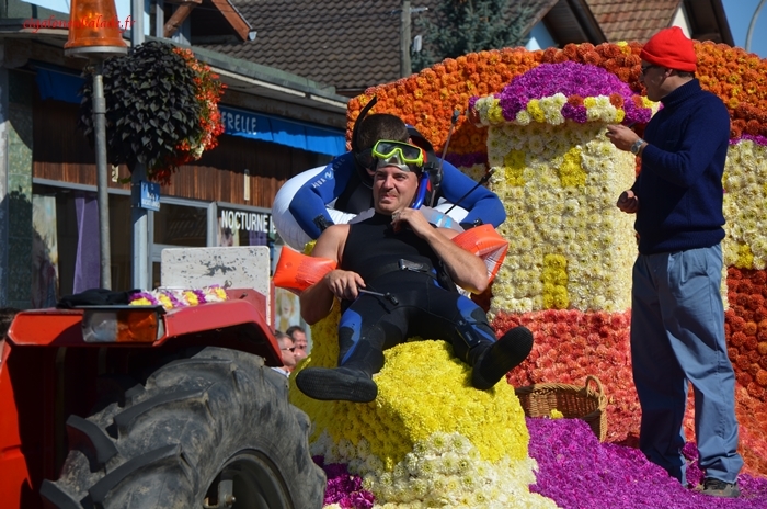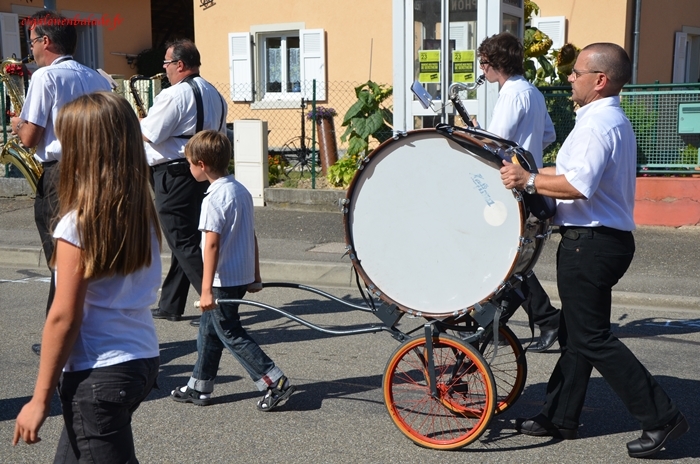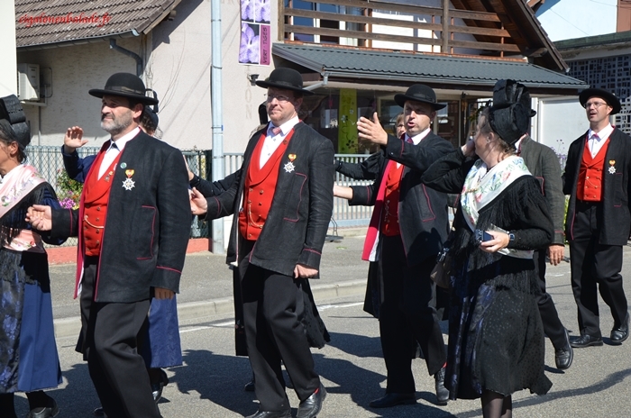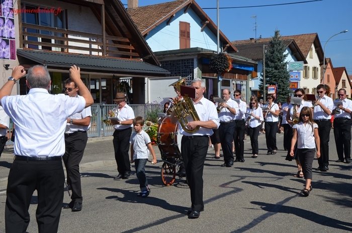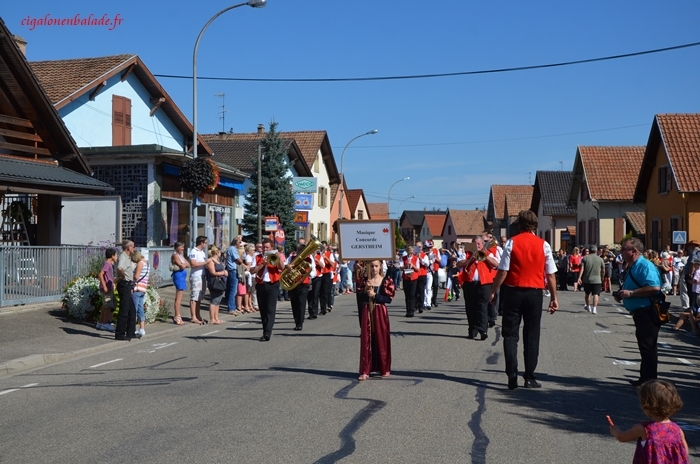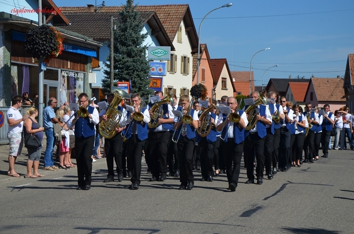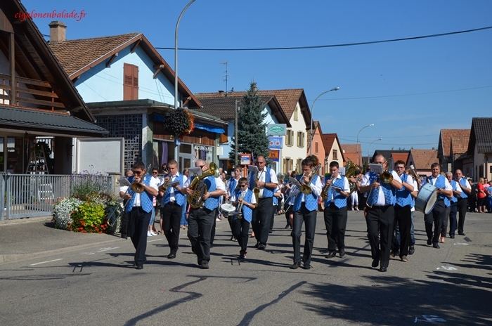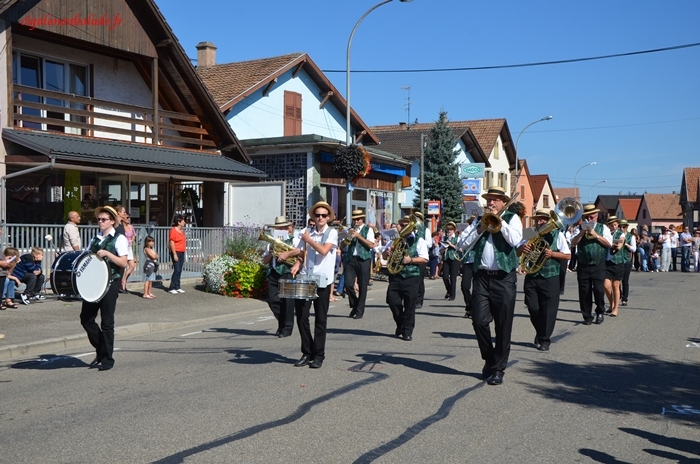 Des fanfares défilent entre les chars et mettent de l’ambiance dans le cortège. Naturellement, l’honneur revient à la Concorde, fanfare locale, en costume traditionnel alsacien.