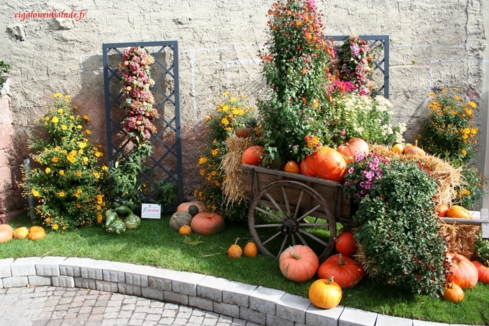 De même les fruits et légumes d’automne sont mis en valeur sur la moindre placette.