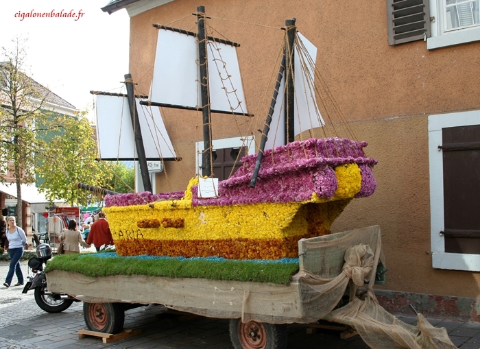 Des chars fleuris des associations jalonnent notre promenade.