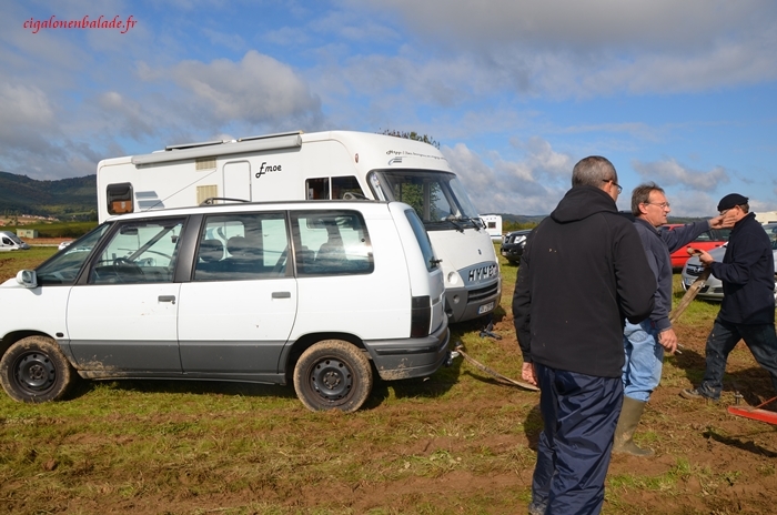 Lorsqu’on voit glisser les voitures, l’on peut craindre le pire pour Cigalon, stationné tout au fond du champ avec les autres camping-cars. Nos inquiétudes de la veille se sont concrétisées.