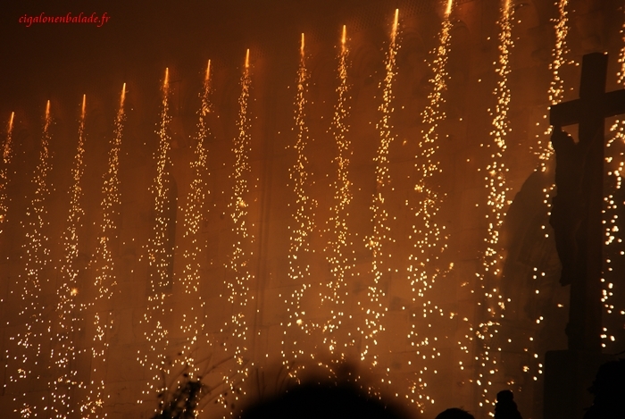 La parade se termine " une nouveauté cette année" par l’embrasement de l’église romane St Pierre et Paul.