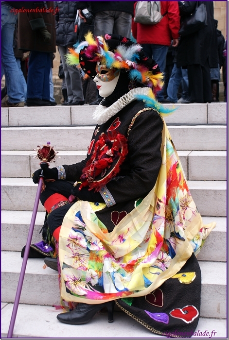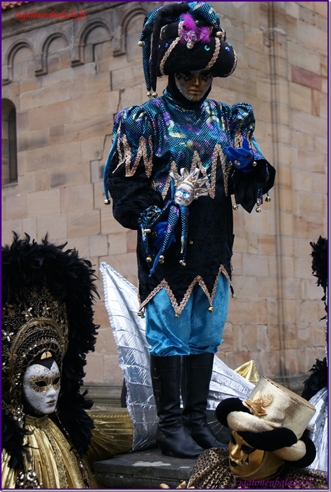 Il fait froid aujourd’hui et un petit vent nous glace jusqu’aux os. Les masques, pour la plupart, sont chaudement camouflés sous les différentes couches qui composent leur costume.