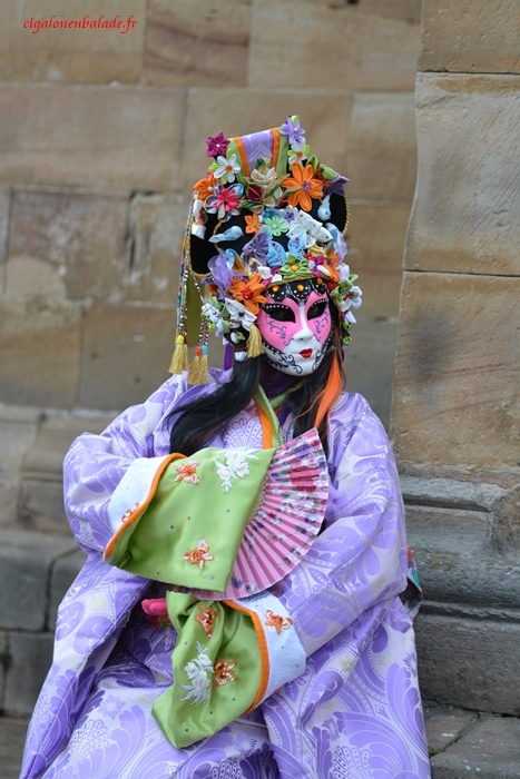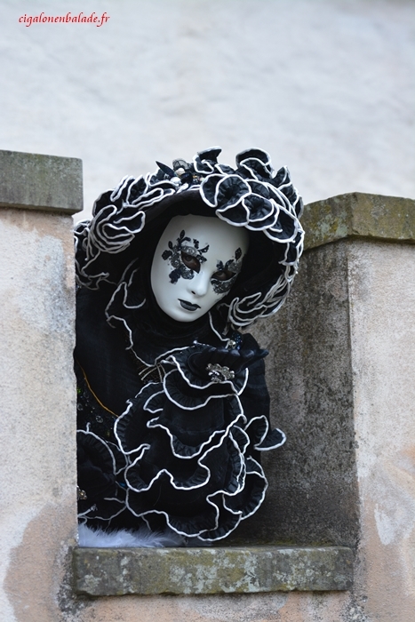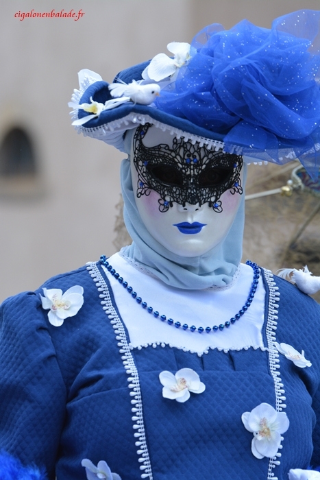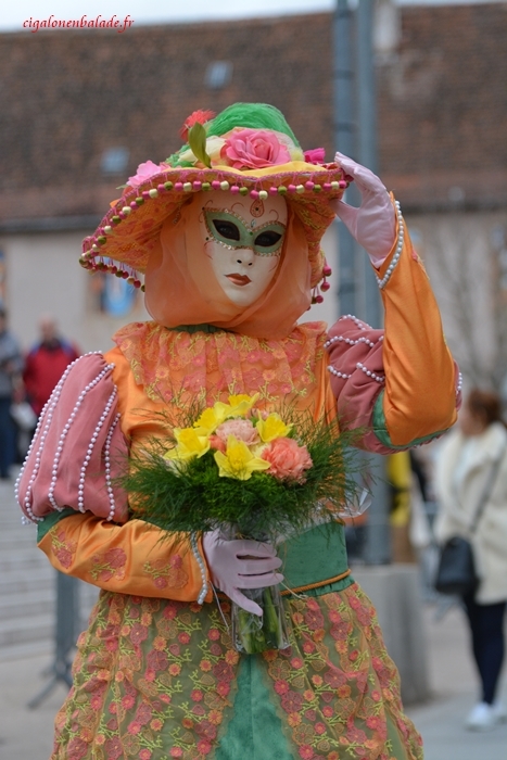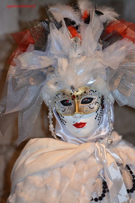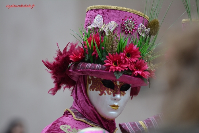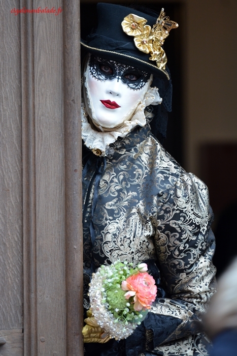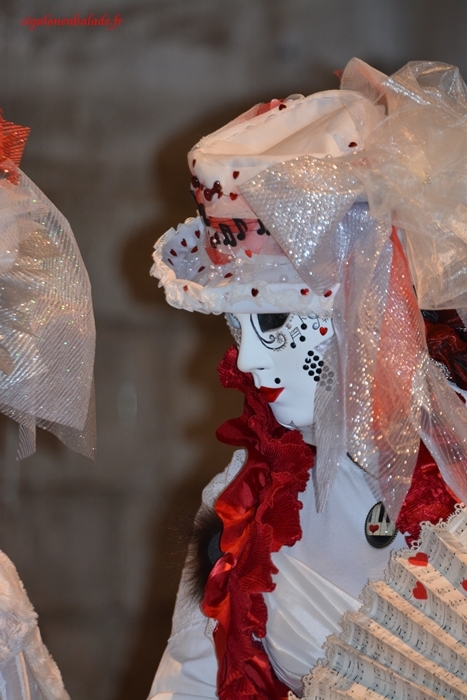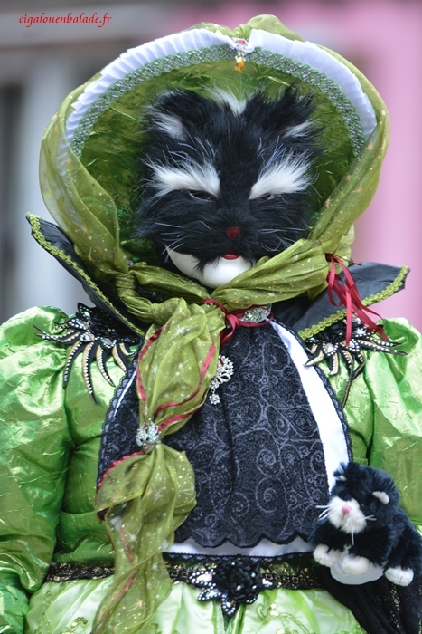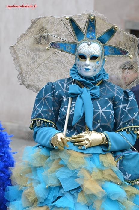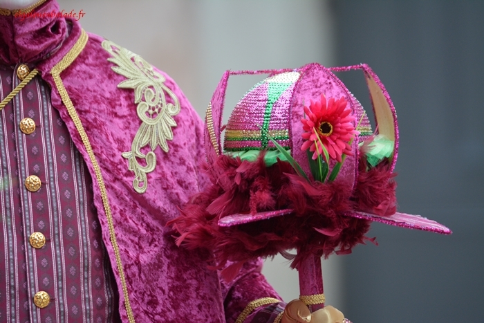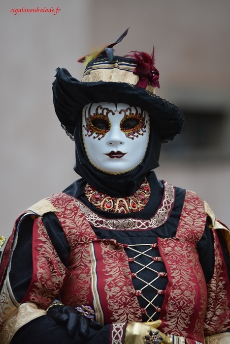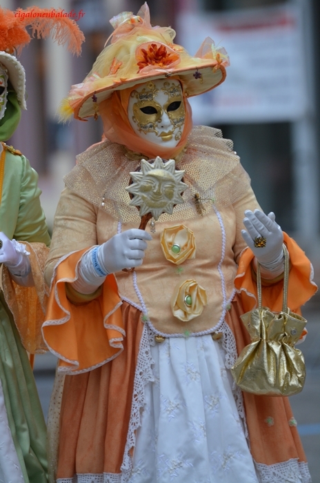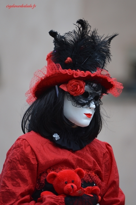 La place de la république devant la mairie a été transformée en place Saint-Marc grâce à un trompe-l’œil et une gondole. On se croirait à Venise, dans la cité des Doges. Les costumes rivalisent de fantaisie et les accessoires sont souvent recherchés. Ici, on ne se déguise pas, on revêt un costume qui fait planer le mystère. On ne court pas, ici on prend son temps. On ne défile pas, on déambule. Peu de paroles échangées, le carnaval vénitien est muet.