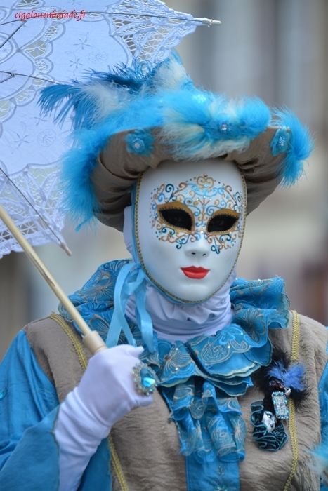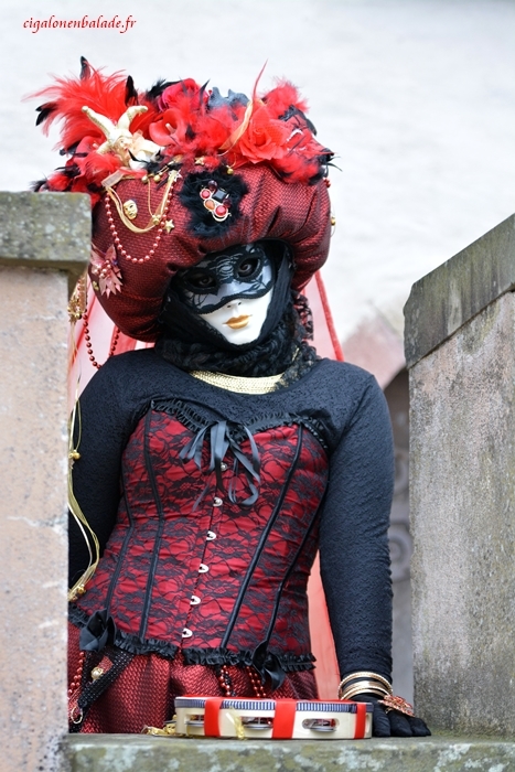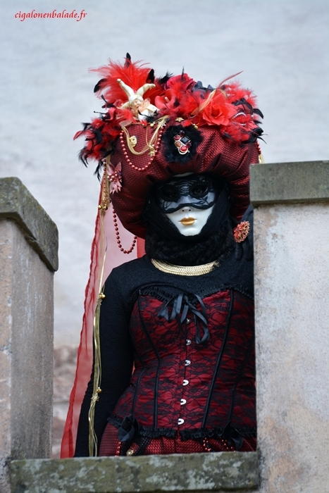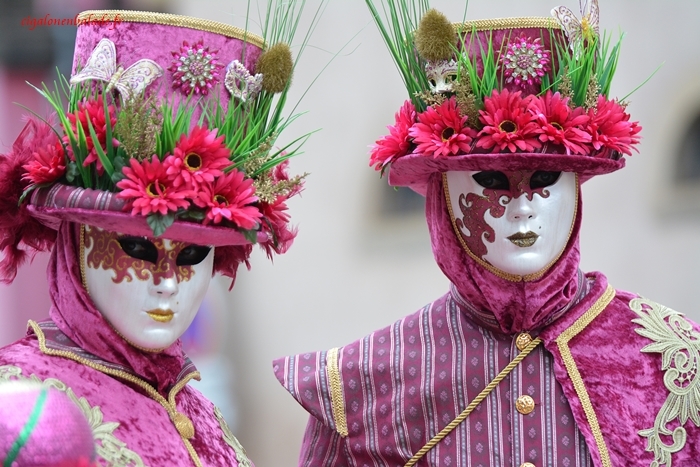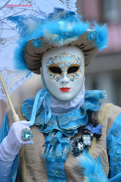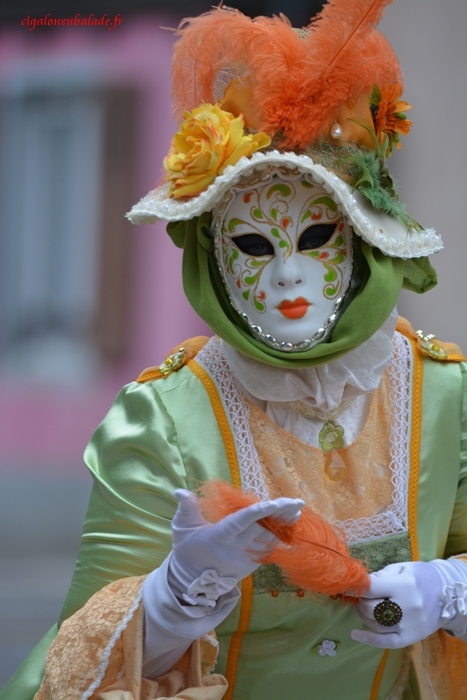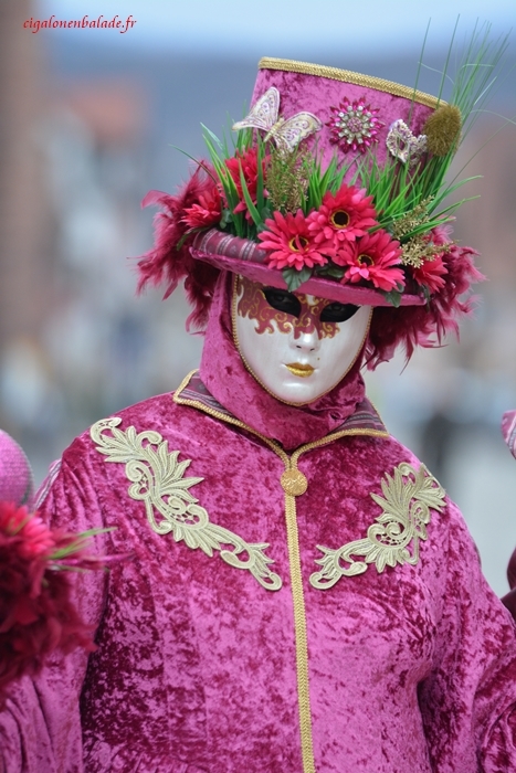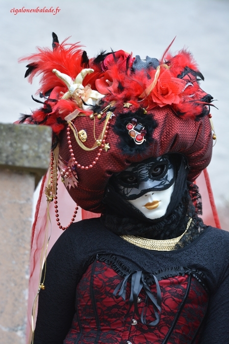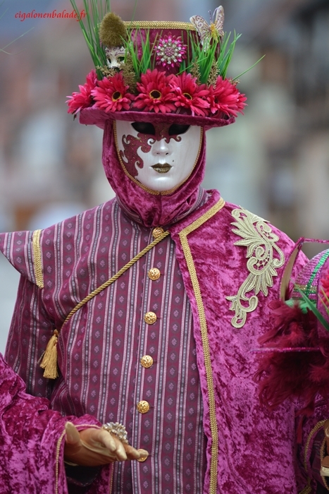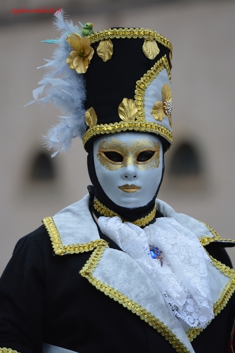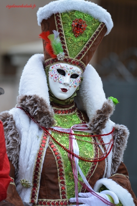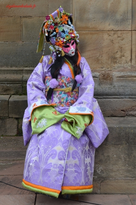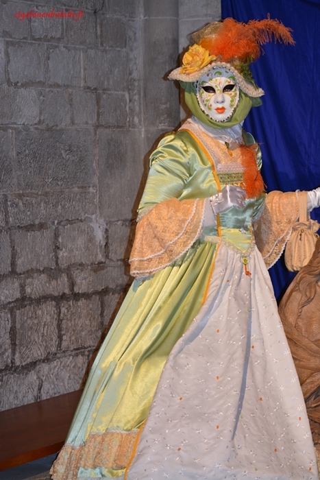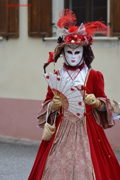 La place de la république devant la mairie a été transformée en place Saint-Marc grâce à un trompe-l’œil et une gondole. On se croirait à Venise, dans la cité des Doges. Les costumes rivalisent de fantaisie et les accessoires sont souvent recherchés. Ici, on ne se déguise pas, on revêt un costume qui fait planer le mystère. On ne court pas, ici on prend son temps. On ne défile pas, on déambule. Peu de paroles échangées, le carnaval vénitien est muet.