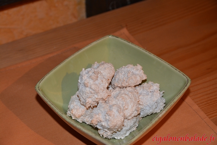 3/ A l'aide de 2 cuillères (à café ou à soupe) faire des petites quenelles et les déposer sur une feuille de papier sulfurisé. Vous devriez pouvoir en faire 20 à 30 selon la taille des cuillères.