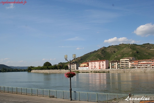 Nous traversons des paysages variés mais pas très spectaculaires : châtaigneraies ardéchoises, ouvrage électrique sur le Doux, vignobles de la vallée du Rhône.