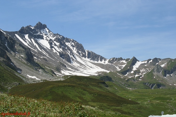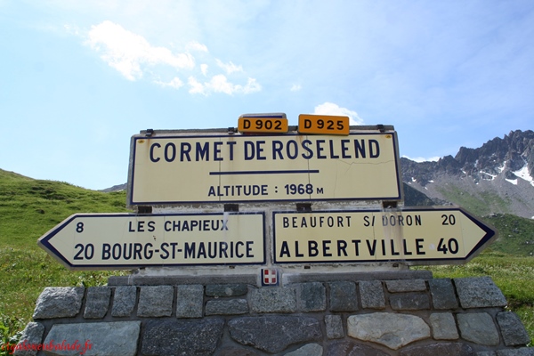 Le Cormet de Roselend sépare le massif du Beaufortin du massif du Mont-Blanc. Nous prenons la traditionnelle plaque de lave émaillée en photo comme pour signer notre passage.