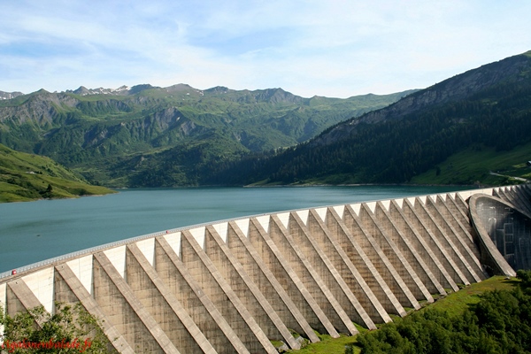 Impressionnant par sa grandeur : 800m de long, 150m de haut, le barrage de Roselend est construit selon une double technique : c’est un barrage voûte et à contreforts.