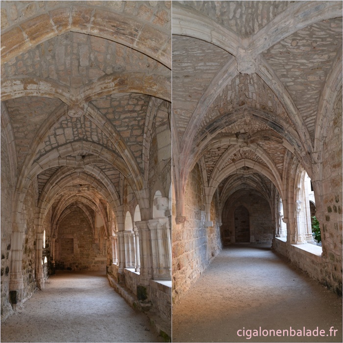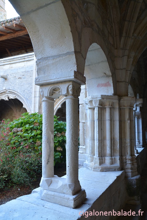 Ce qui caractérise le cloître, c‘est qu’il est composé de styles architecturaux différents. Du cloître roman détruit vraisemblablement pendant la guerre de 100 ans, il ne subsiste que la galerie attenant à l’église, des arcades soutenues par des doubles colonnes ornées de têtes grossièrement sculptées