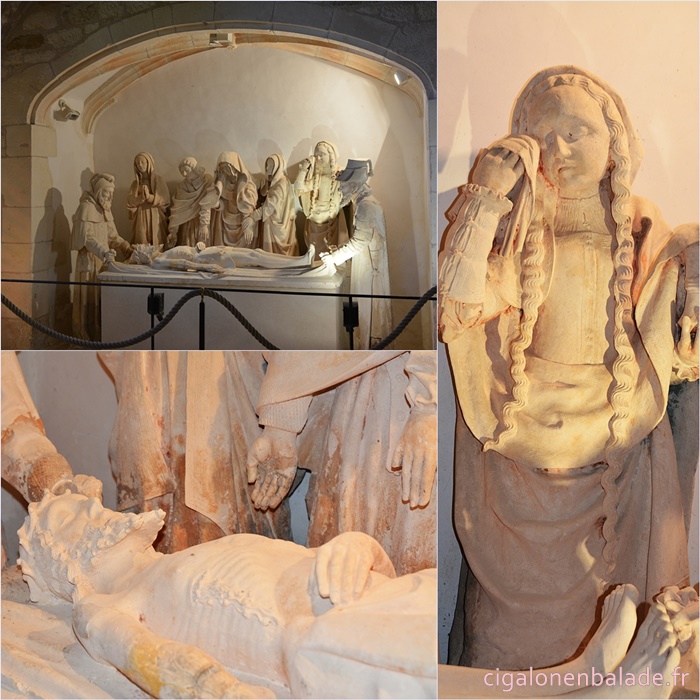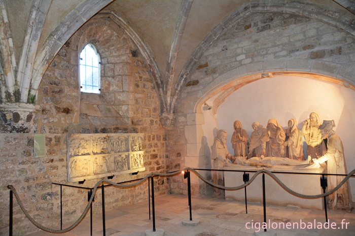 La salle capitulaire qui a servi de citerne pendant près de deux siècles abrite une magnifique Mise au Tombeau de 8 personnages en pierre de Carennac, polychrome à l’origine (fin du XVème siècle) mais dont les couleurs ont presque totalement disparues. L'expression des personnages en fait un chef-d'œuvre d'art gothique.