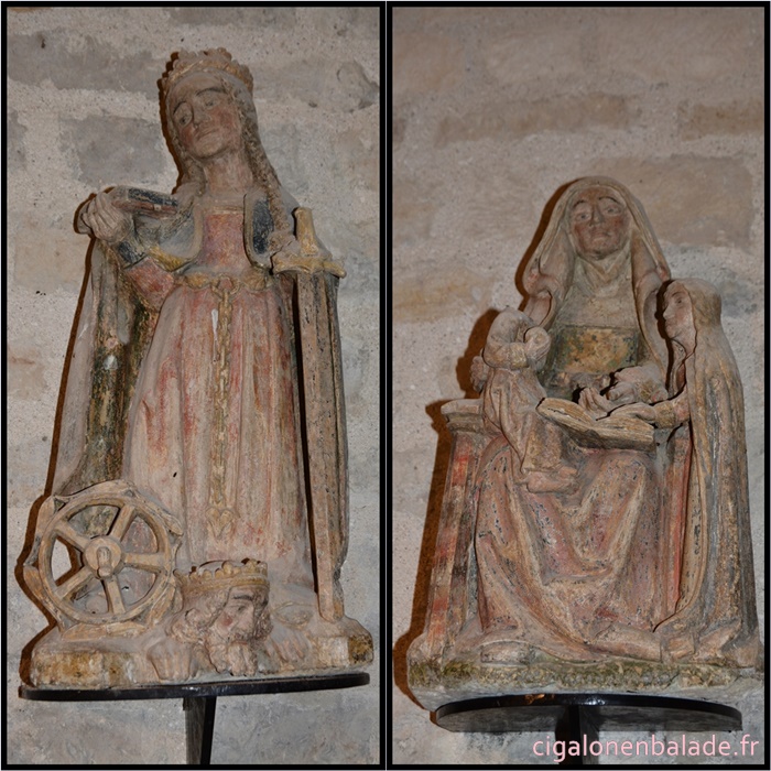 Cet ensemble est complété par une série de statues de saints et saintes de facture plus naïve mais issues du même atelier.