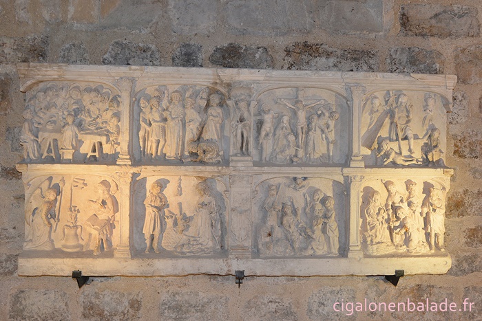 Plus tardif, un bas-relief du XVIème siècle représente des scènes de l’enfance et de la Passion du Christ.