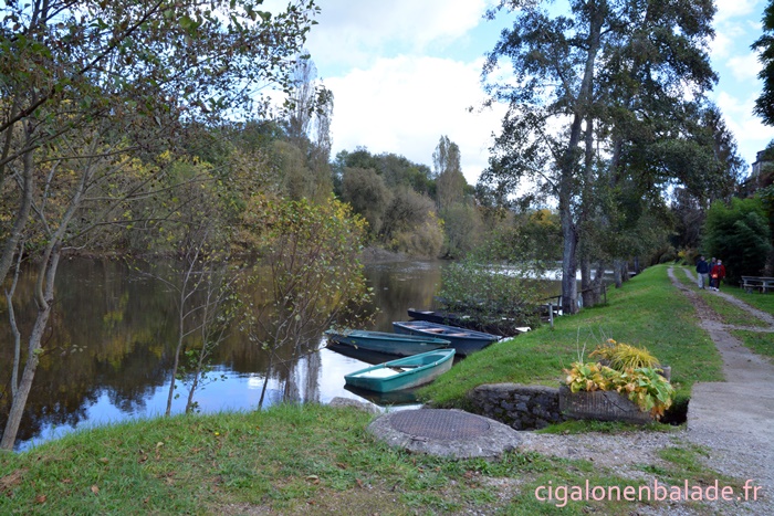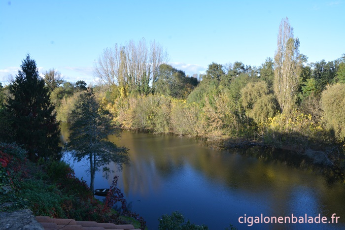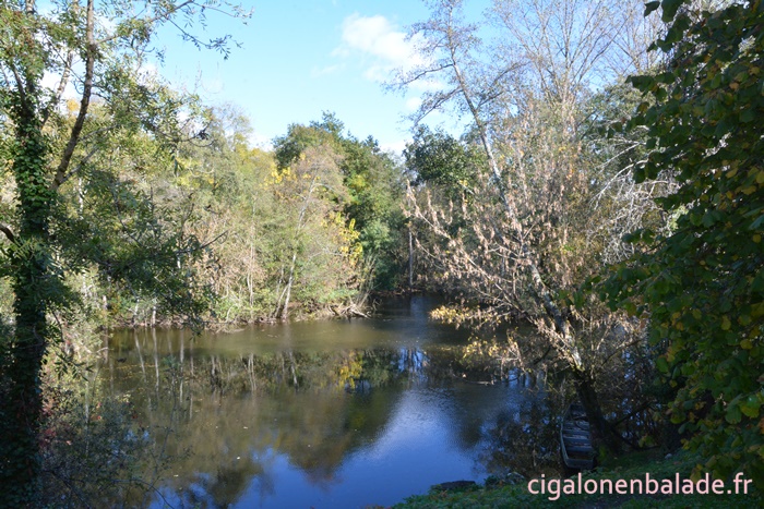 Nous longeons un bras de la Dordogne, appelé canal de l’Hermitage qui alimentait deux moulins en aval mais le chemin devient vite boueux et nous retournons au village.