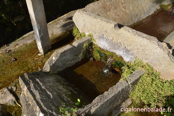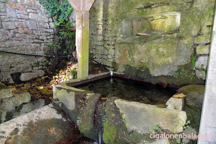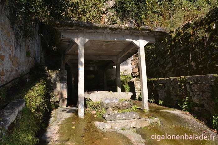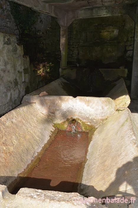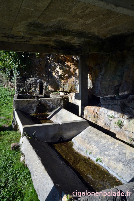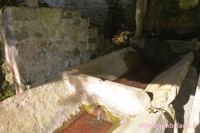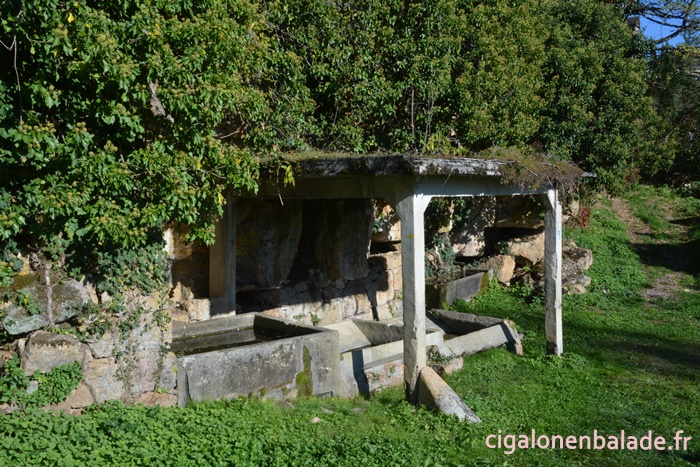 Nous empruntons sur quelques centaines de mètres la route départementale pour gagner la fontaine-lavoir Carbes.