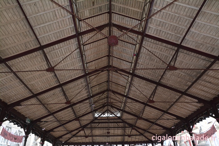 Nous avons bien tourné en rond et nos pas nous ramènent sur la place Carnot et sa halle où les décorations d’octobre rose rivalisent avec celles de Noël passé.