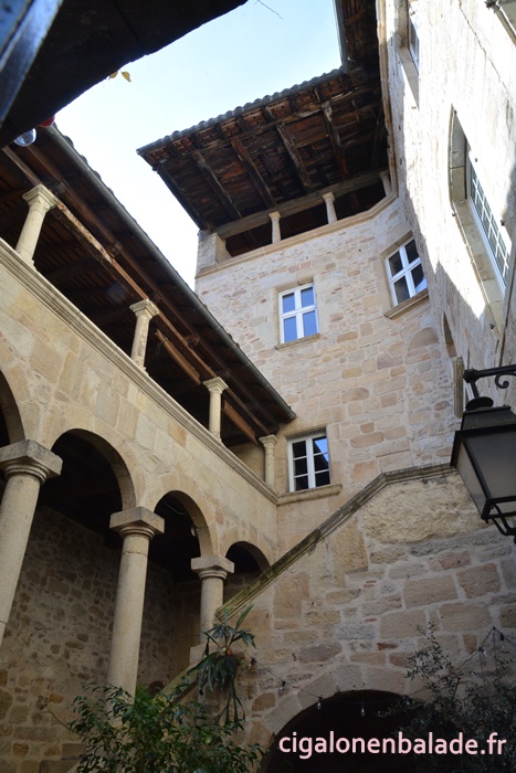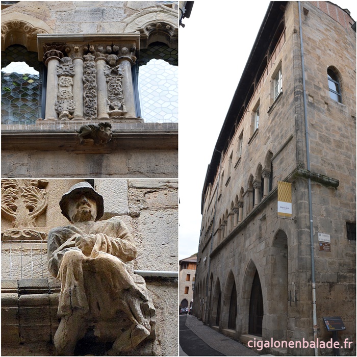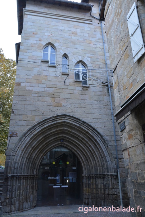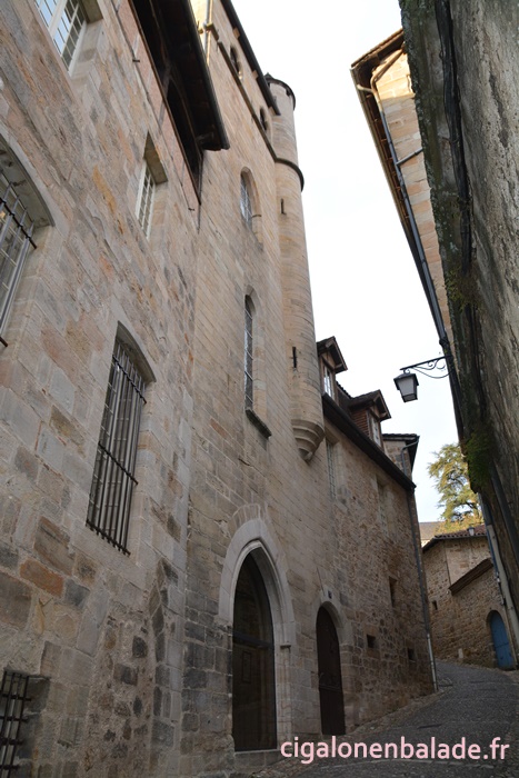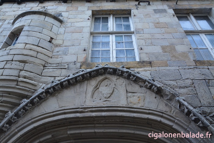 Nous arrivons au palais Balène qui est la plus vaste demeure médiévale de Figeac. Construite à la veille de la Guerre de 100 ans, elle était la résidence d'une famille proche du pouvoir royal. Ce palais urbain était organisé autour d'une cour intérieure. A l'étage, vastes fenêtres gothiques. Le portail principal du palais ressemble à un portail d'église.