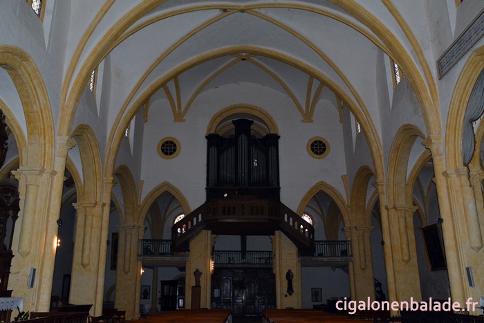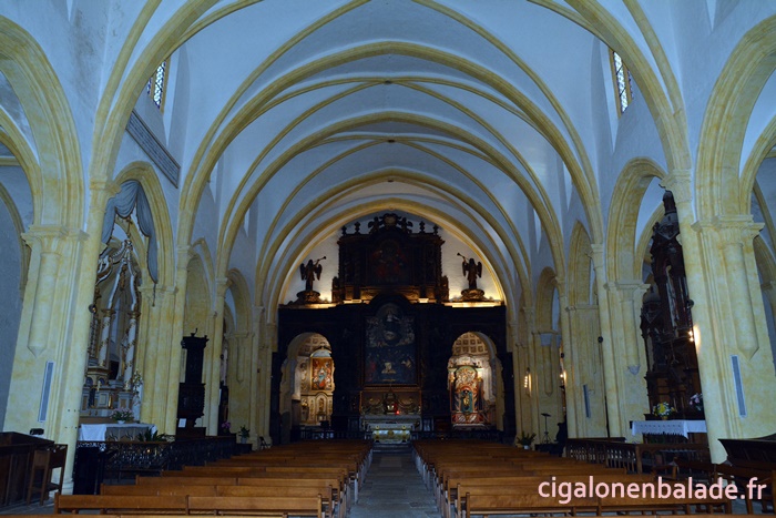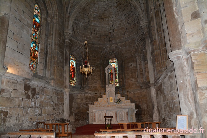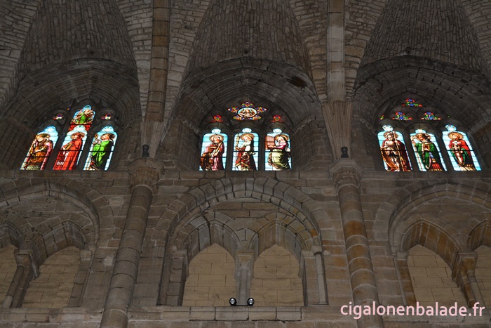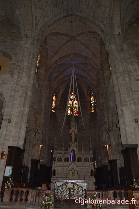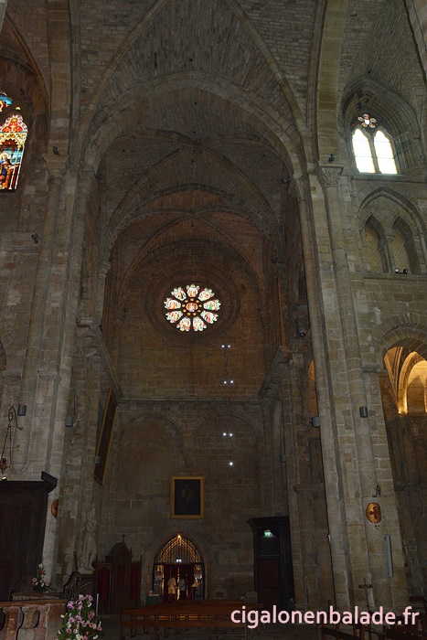 La nef romane (XIème-XIIème siècles), mesure 7 mètres de large, soixante deux mètres de long, vingt et mètres de haut et comporte 7 travées. Le transept et le chœur sont gothiques (XIIIème siècle), tout comme les chapelles latérales (XIVème siècle).