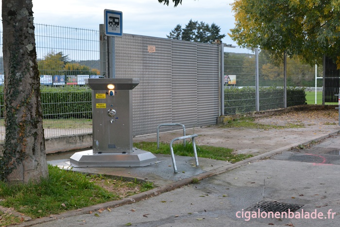 Depuis notre précédent passage, une aire digne de ce nom (même si elle est sur un parking goudronné) a été créée à côté du stade de rugby (PK = 3€ de mars à septembre, services = 2€). Une quinzaine de places sont réservées aux CC en bordure d’un grand parking à voitures, un peu en pente.
