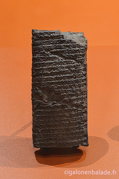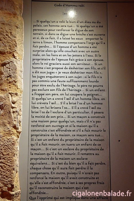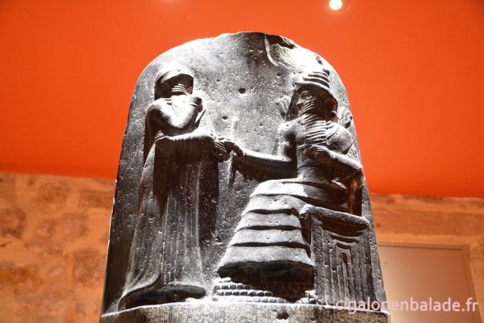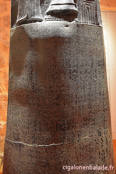 Code de loi du roi Hammurrabi de Babylone. Les 3500 lignes qui sont incisées dans la stèle sont écrites en cunéiformes et langue akkadienne.