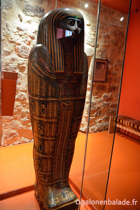 Ce matin, il s’agit d’être au musée Champollion dès l’ouverture à 10h car il ferme sur le temps de midi. A notre arrivée, il vient d’ouvrir et déjà la queue devant. Cela traîne un peu… Vérification du pass, vente des billets (2x 5€), récupération des audio-guides à la place de la visite guidée que nous n’aimons pas particulièrement et nous voilà dans la salle 0, consacrée à Champollion et à l’Égypte.