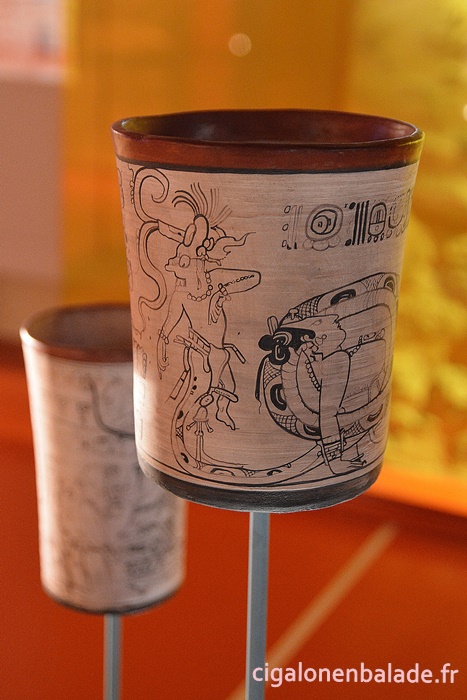 Les mayas ont inscrit sur argile le mythe de la création du monde. Reproduction de vases à pied anciens.