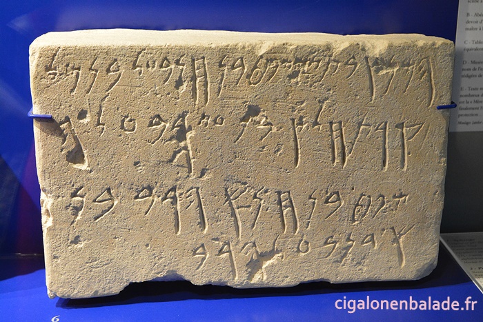 Salle 4 - L’invention de l’alphabet en Méditerranée : Les premiers alphabets qui comprennent entre 27 et 30 signes ont été créés par les peuples du Moyen-Orient. En moins d’un siècle, des dizaines d’alphabets y voient le jour. 7000 environ sont en pratique de nos jours.