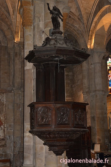 Un peu plus loin, l'abbatiale St-Sauveur, vestige de l’abbaye bénédictine qui au IXème siècle a donné naissance à la cité. L'édifice actuel a été construit entre le XIème et le XIVème siècle et mêle les styles roman et gothique.