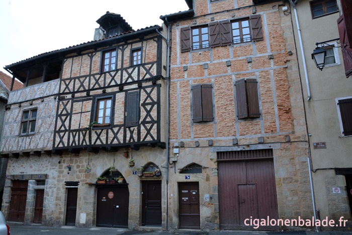 La plupart des maisons de Figeac ont été transformées au fil des siècles et rassemblent des éléments d’époques différentes mais dans le quartier de l’ancien canal, des maisons conservent encore des pans de bois, des étages à encorbellement sur un rez-de-chaussée en pierre datant du MA.
